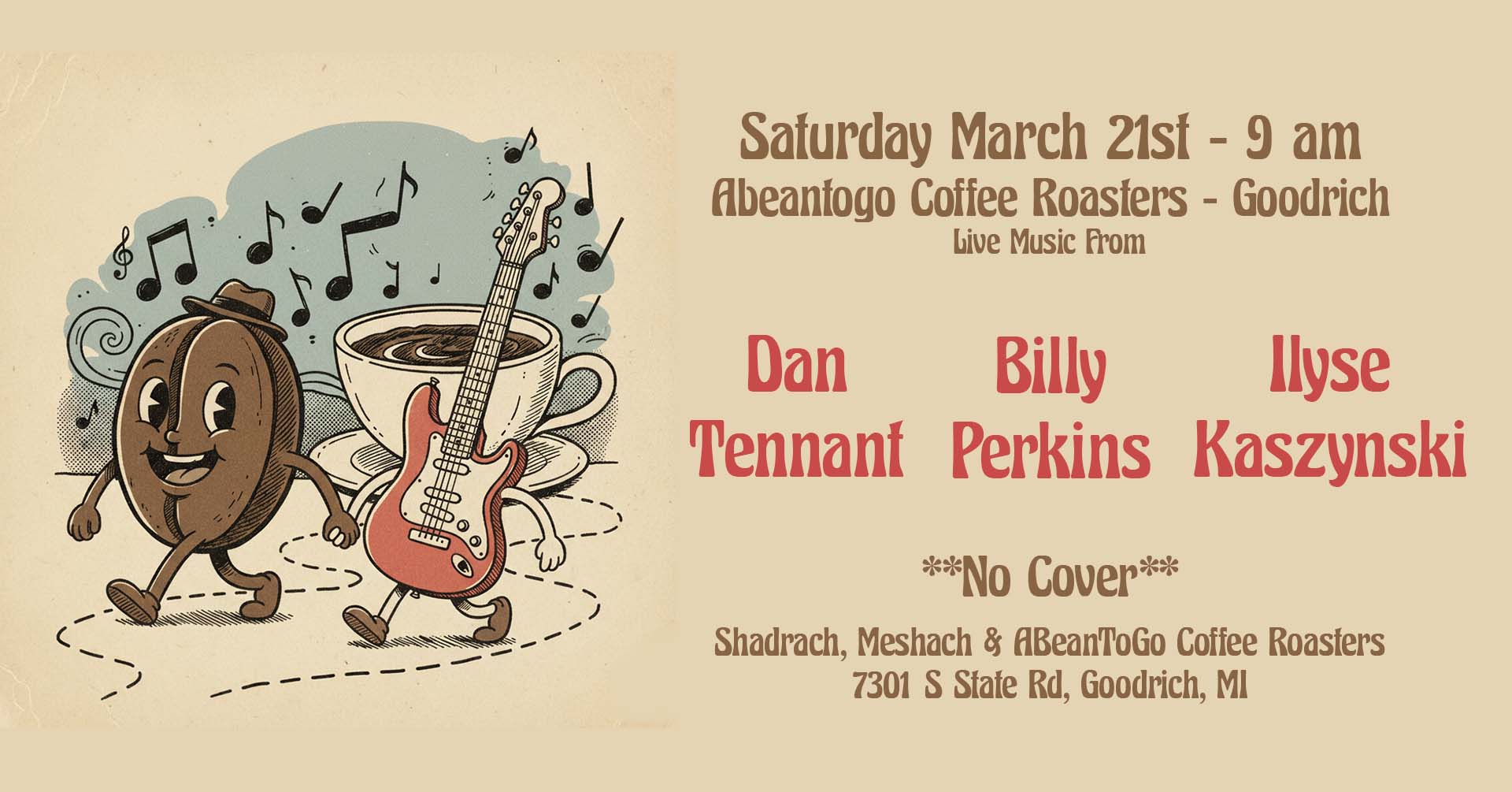 03/21/26 – THE WHEAT & THE WEEDS – SHADRACH, MESHACH & ABEANTOGO – GOODRICH, MI – 9:00 AM – WITH MOTHER LEOPARD AND BILLY PERKINS