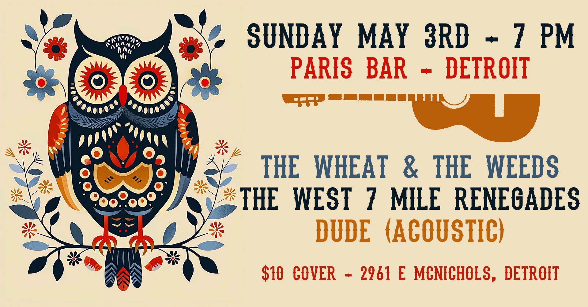 05/3/26 – THE WHEAT & THE WEEDS – PARIS BAR – DETROIT, MI – 7:00 PM – WITH DUDE AND THE WEST 7 MILE RENEGADES